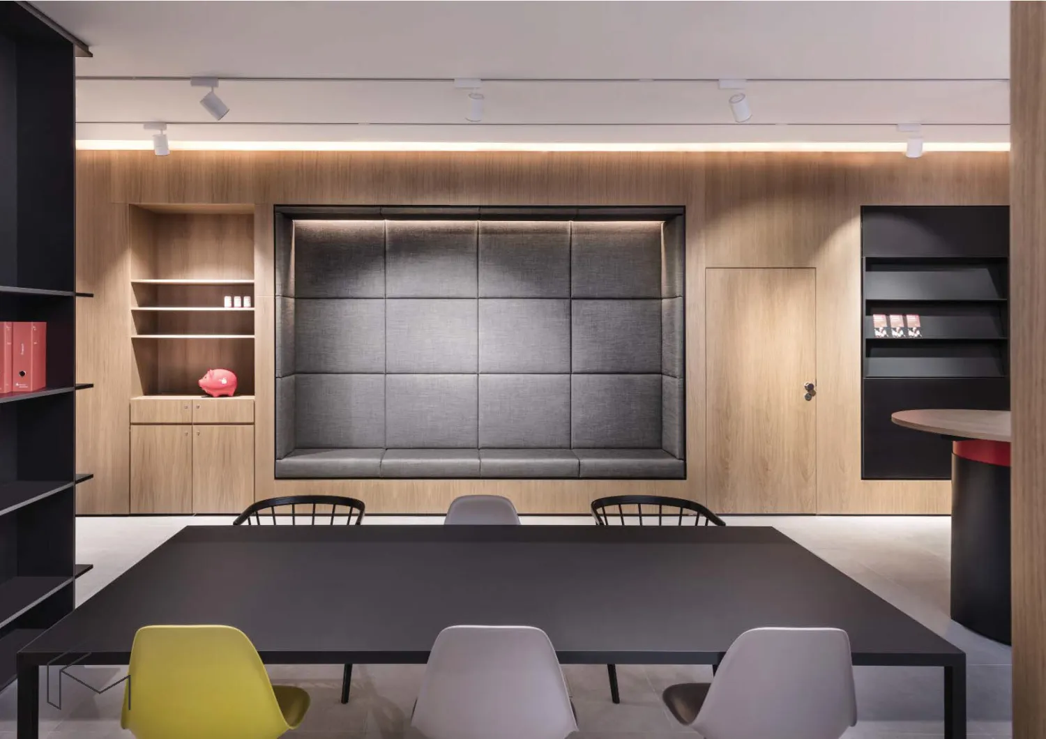 Come parte del loro aggiornamento più ampio di un numero di filiali bancarie, il cliente ci ha contattato per costruire box riunioni personalizzati su misura che potessero consentire riunioni silenziose e riservate all'interno del più ampio spazio pubblico della banca.