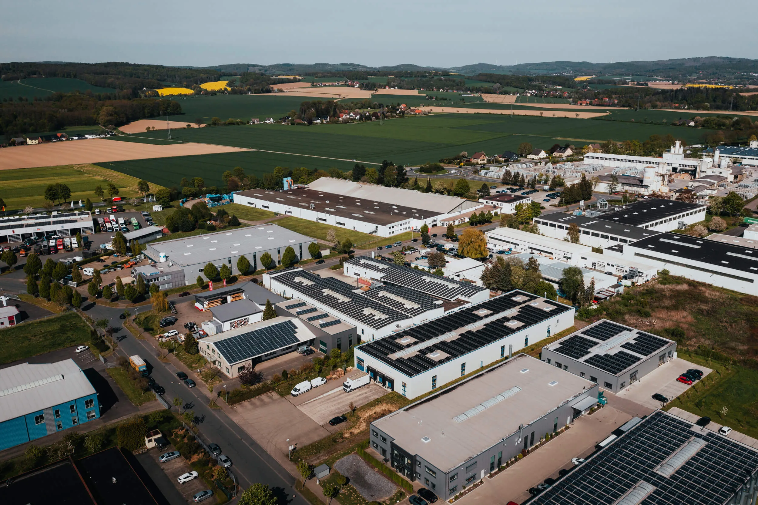 Il nostro grande impianto fotovoltaico, montato sul tetto della fabbrica, genera 300.000 KWh di energia, di cui ne consumiamo circa 150.000 KWh all'anno. L'elettricità in eccedenza viene immessa nella rete pubblica.